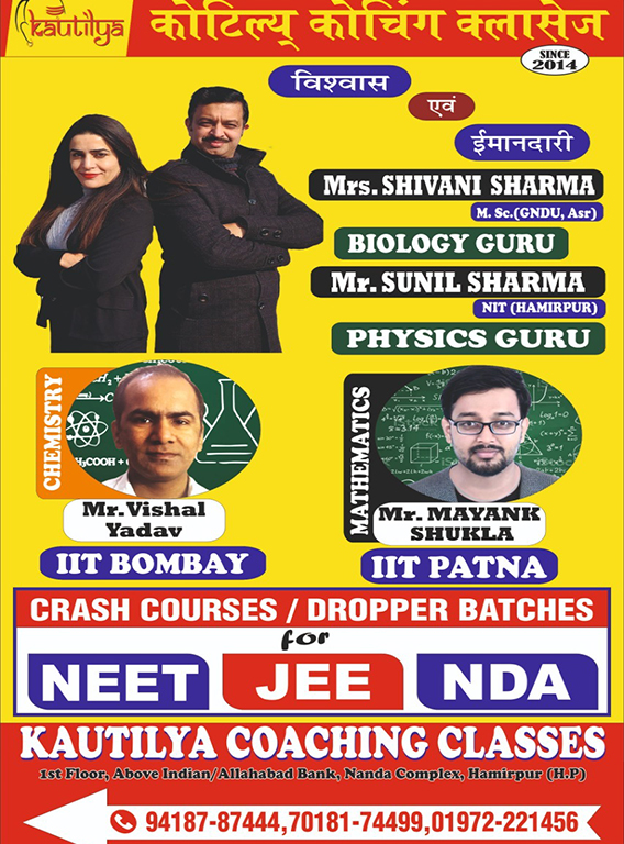 Kautilya Coaching Classes, Hamirpur, Kohta provides Coaching for JEE Main, JEE Advanced, NEET, BITSAT, AIIMS, Class XI - XII, NDA, JIPMER, Indian Air Force Recruitment in Hamirpur. Are you looking to join Kautilya Coaching Classes courses or Kautilya Coaching Classes test series? Learn all details of Kautilya Coaching Classes fee structure, faculty, infrastructure and more below. Read Kautilya Coaching Classes, Hamirpur, Kohta centre reviews before making a decision. Exambazaar offers an exclusive discount on Kautilya Coaching Classes fees which you can avail by applying online via Avail Discount Form.